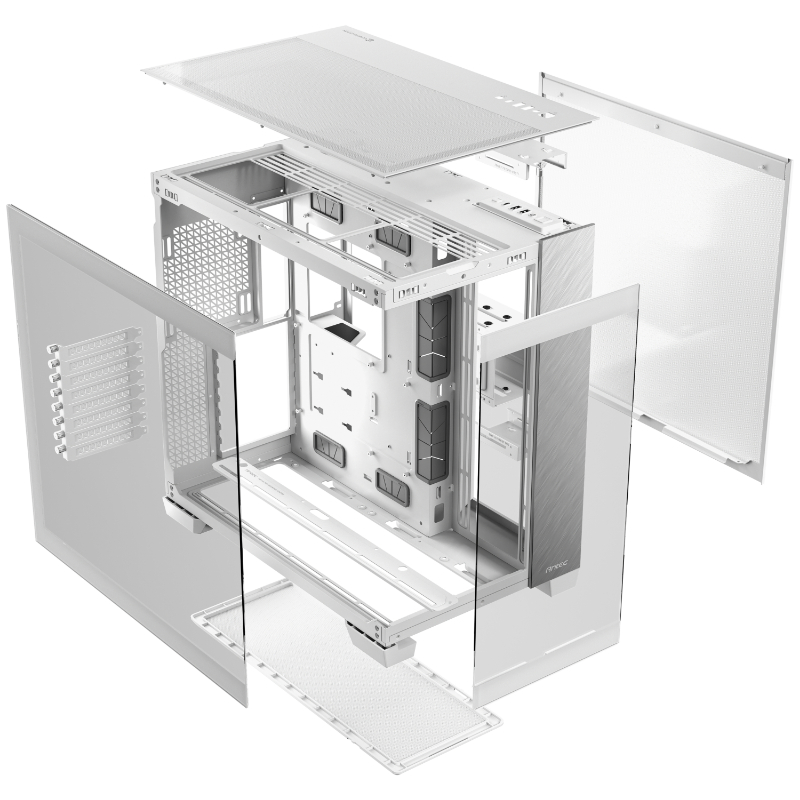 Los paneles frontal e izquierdo emplean una técnica única de biselado de 45° que rompe la barrera entre las dos piezas de vidrio. El borde extremadamente fino de la junta de vidrio mejora la experiencia visual ininterrumpida, panorámica y ultratransparente de la vista de 270°, lo que permite una exhibición completa de componentes de PC de alta gama y efectos de iluminación deslumbrantes.