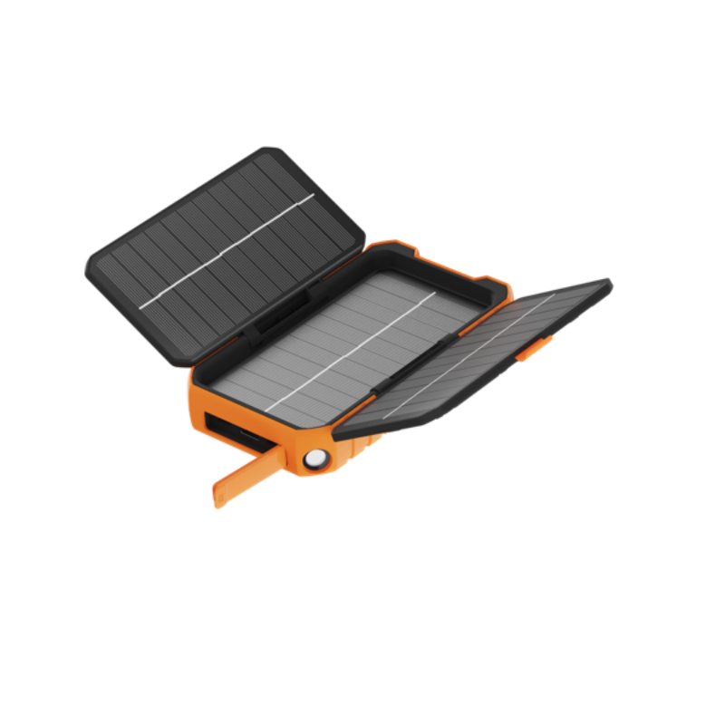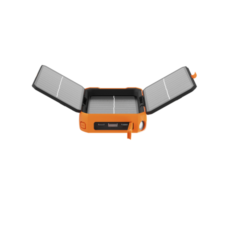 10000mAh/ IP65/ 2xUSB-C PD hasta 20W, 1xUSB-A/ Linterna/ Paneles solares