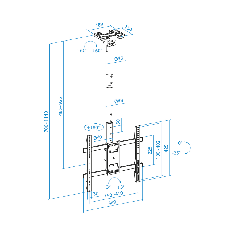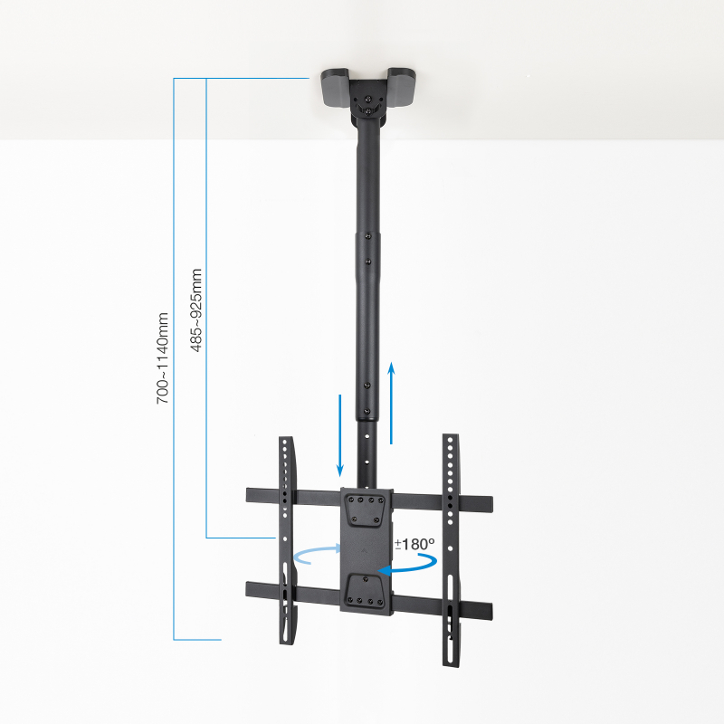 De 32 a 75"/ VESA máximo 400x400mm/ Hasta 60kg/ Ángulo de giro de 180º/ Distancia de techo de hasta 925mm